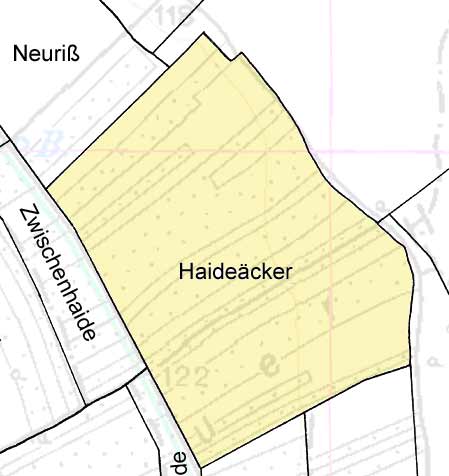 Haideäcker „Hoadocka“ - (3971/1 - 4103) - Äcker in der Nähe einer Heide oder auf einer Heide. 1757 Mitterer Heydacker (kanonische Visitation) 1812 Oberer und mittlerer Heidacker (kanonische Visitation) 1875 Haidacker (Josefinische Landesaufnahme)
